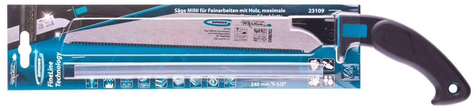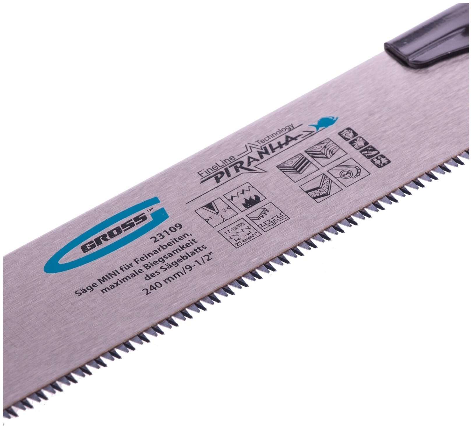 Type: circular saw, processing material: wood, blades included: 1 piece, blade length: 240 mm, blade material: tool steel, hardened teeth, tooth pitch: 17-18, 3D sharpening, handle: fixed