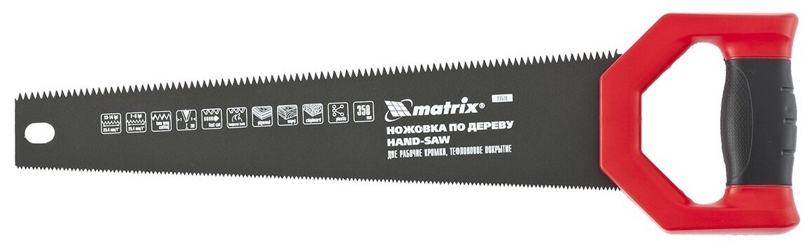 Hacksaw for wood UNIVERSAL, 350 mm, two working edges 13-14 TPI and 7-8 TPI, Matrix Teflon coated