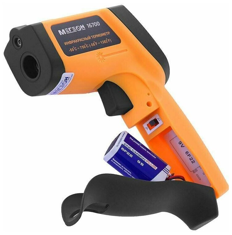 Display backlight; continuous measurement mode; measurement error: ± 3°С from -50°С to 0°С, ± 1.5°С from 0°С to max°С; spectral range: 8-14 microns; the presence of a battery charge indicator; working time: 22 hours without laser, 12 hours �