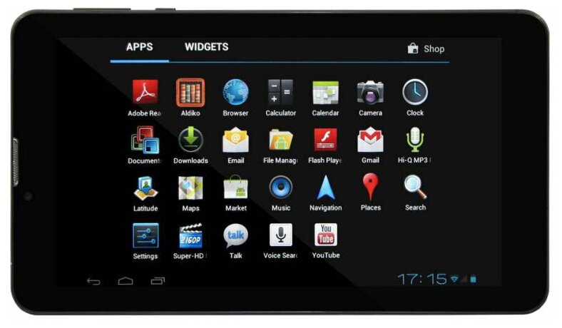Operating system: Android, screen diagonal: 9-9.7, screen resolution format: SD, number of processor cores: 2, keyboard: no, number of main cameras: 1, features: memory card slot, accelerometer, built-in microphone