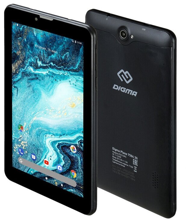 Digma Plane 7594 3G SC7731E 1.3 4C RAM2Gb ROM16Gb 7 IPS 1024x600 3G Android 9.0 black 2Mpix 0.3Mpix BT GPS WiFi Touch microS