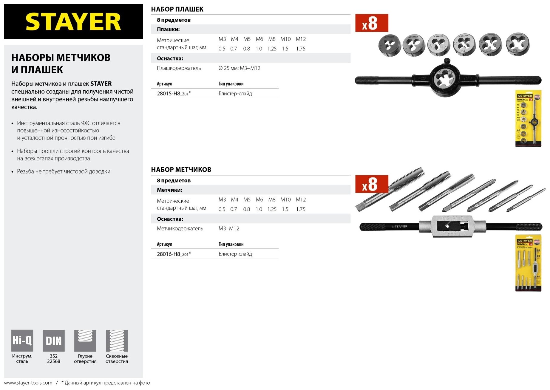 Type: die set, thread type: metric M, thread direction: right, metric thread diameter: M10, M12, M3, M4, M5, M6, M8, thread pitch: 0.5, 0.7, 0.8, 1.0, 1.25, 1.5, 1.75 , number of items: 8 pcs., minimum holder diameter: M3, poppy
