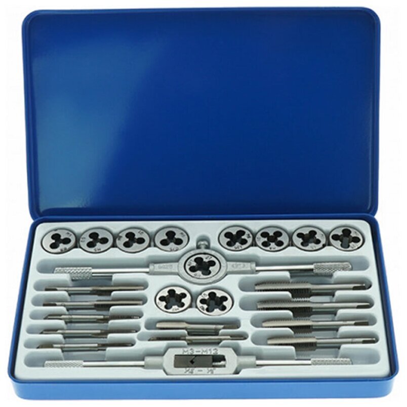 Type: a set of taps and dies, thread type: metric M, NPT pipe thread, material: CV, thread direction: right, metric thread diameter: M10, M12, M5, M6, M8, thread pitch: 0.8, 0.9, 1.0, 1.25 , 1.5, number of items: 24 pcs., region
