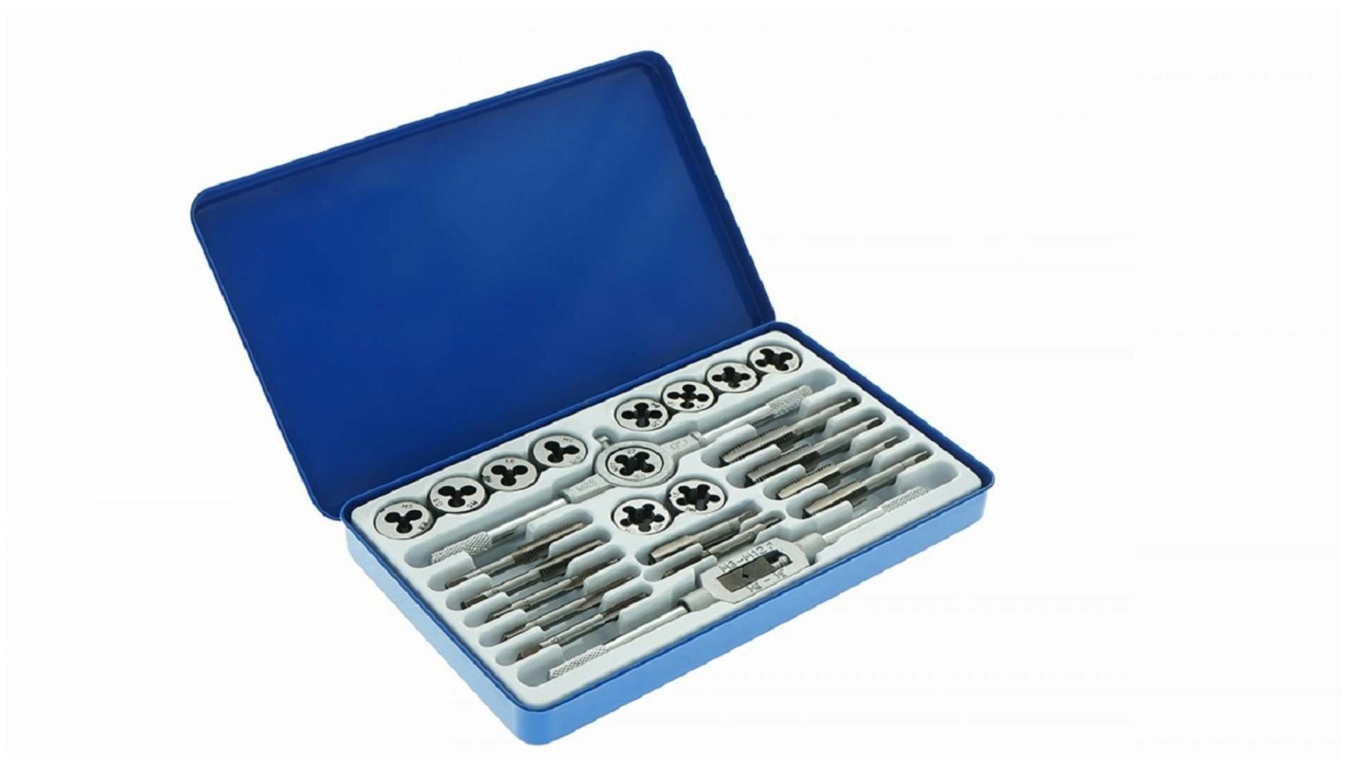 - 10 taps and 10 dies: M5x0.8, M5x0.9, M6x0.75, M6x1.0, M8x1.0, M8x1.25, M10x1.25, M10x1.5;<br/>