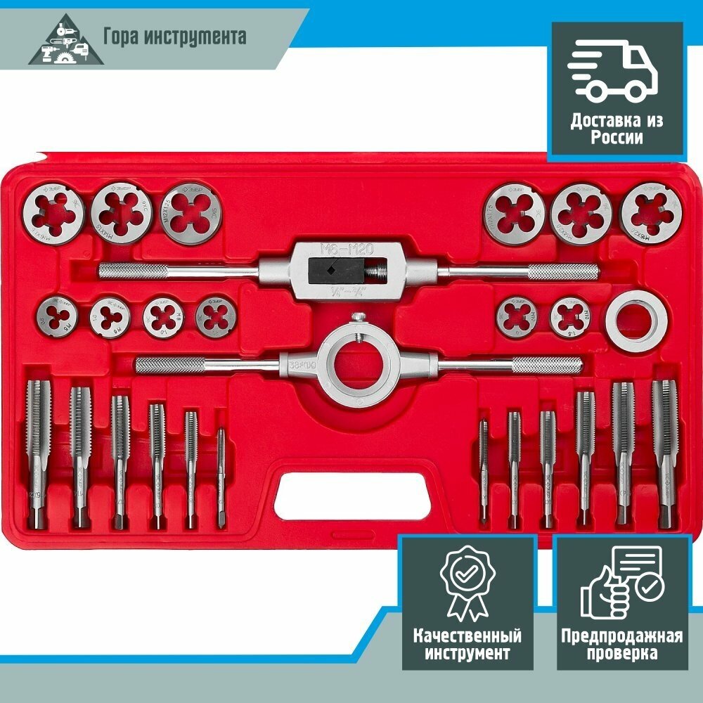 Type: set of taps and dies, thread type: metric M, material: tool steel, thread direction: right, metric thread diameter: M10, M12, M3, M4, M5, M6, M8, thread pitch: 0.5, 0.7, 0.8, 1.0, 1.25, 1.5, 1.75, number of items