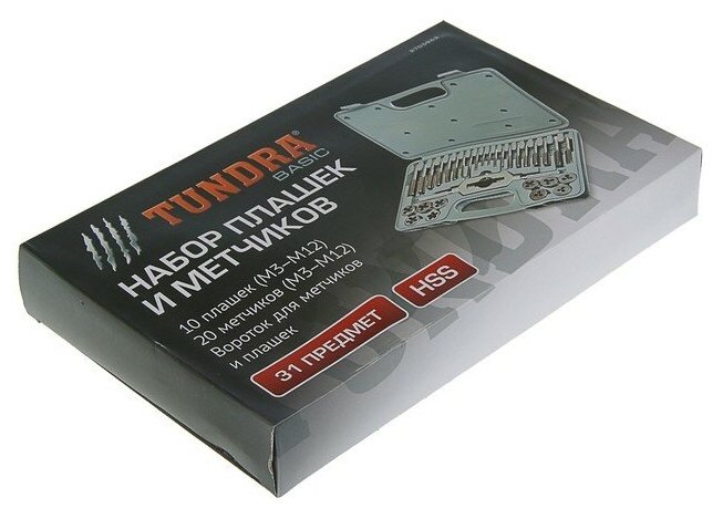 Description: Type: a set of taps and dies, thread type: metric M, material: HSS, thread direction: right, metric thread diameter: M10, M12, M3, M4, M5, M6, M8, thread pitch: 0.5, 0.7, 0.8, 1.0 , 1.25, 1.5, 1.75, number of items: 31 pcs.