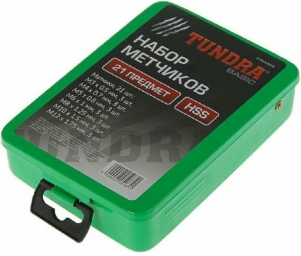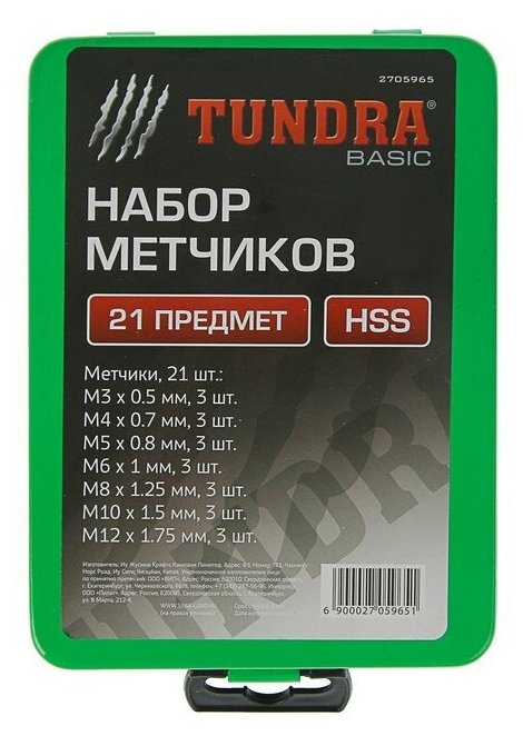 Type: tap set, thread type: metric M, material: HSS, thread direction: right hand, metric thread diameter: M10, M12, M3, M4, M5, M6, M8, thread pitch: 0.5, 0.7, 0.8, 1.0, 1.25 , 1.5, 1.75, number of items: 21 pcs.