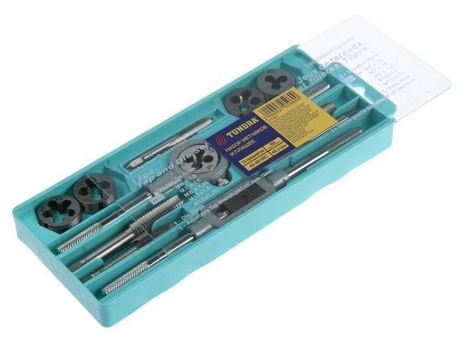 Type: a set of taps and dies, thread type: metric M, thread direction: right, metric thread diameter: M10, M12, M6, M7, M8, number of pieces: 12 pieces, minimum holder diameter: M12, maximum hold diameter