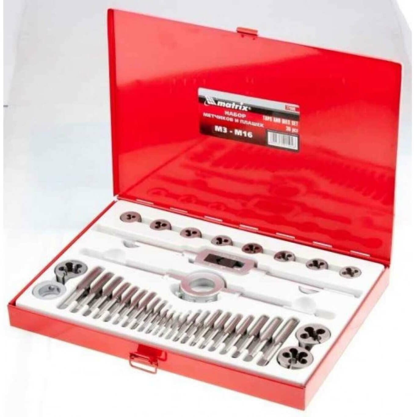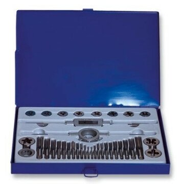 Type: a set of taps and dies, thread type: metric M, material: 9XC, thread direction: right, metric thread diameter: M10, M12, M14, M16, M3, M4, M5, M6, M8, thread pitch: 0.5, 0.7 , 0.8, 1.0, 1.25, 1.5, 1.75, 2.0, number of items: 36 pieces, region