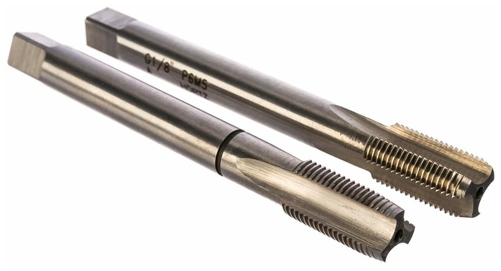 Type: tap, thread type: pipe G, material: HSS, inch thread diameter: 1/8", number of pieces: 2 pcs., application: for machine tools, manual