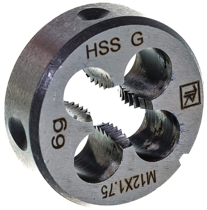 Type: die, thread type: metric M, material: HSS, thread direction: right, metric thread diameter: M12, thread pitch: 1.75, scope: for machine tools, manual