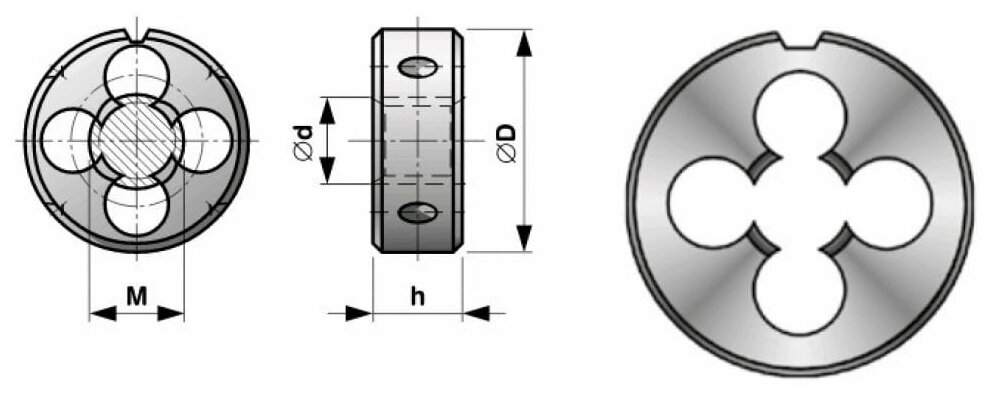 Type: die, thread type: metric M, material: tool steel, thread direction: right, metric thread diameter: M10, thread pitch: 1.25, number of items: 1 piece, scope: manual