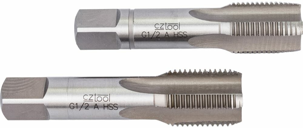 Type: tap, thread type: pipe G, material: HSS, thread direction: right hand, inch thread diameter: 1/2", number of items: 2 pcs., application area: manual
