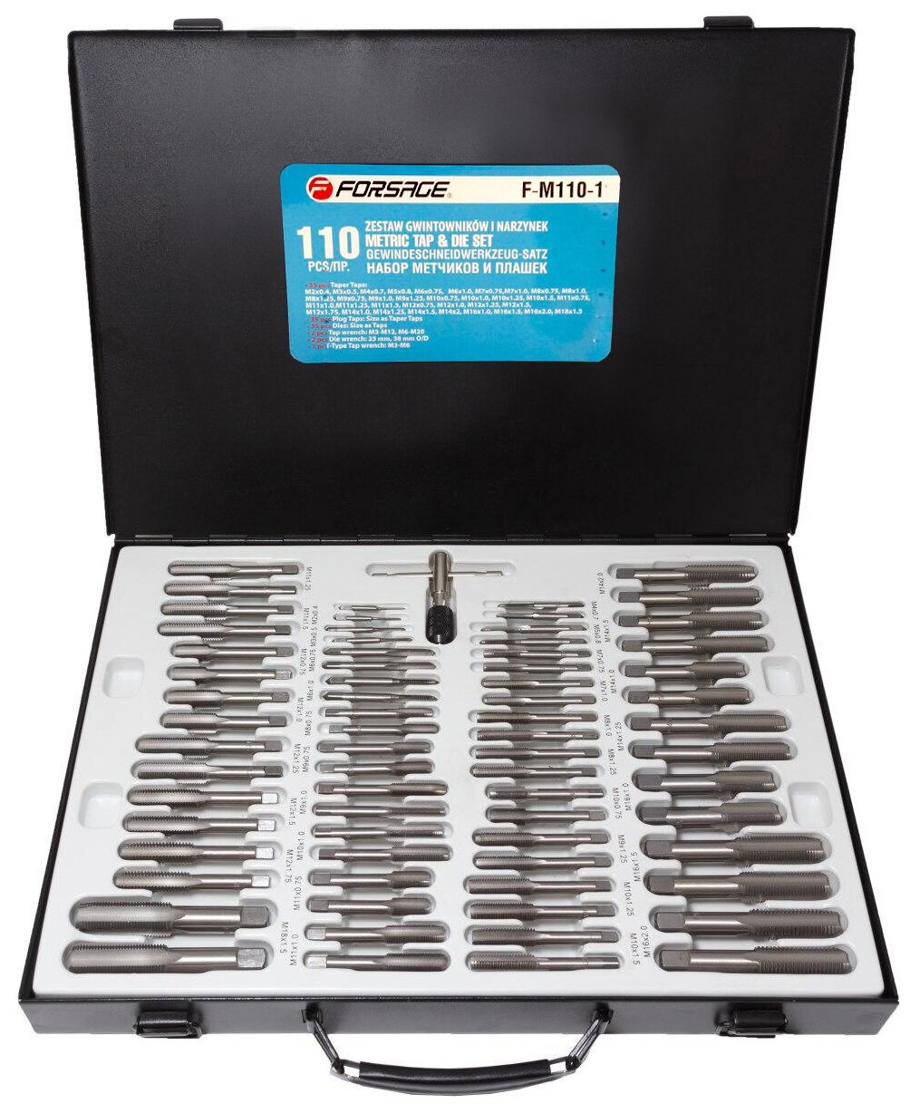 A set of taps and dies 110 pr. metric metal. case Forsage F-M110-1