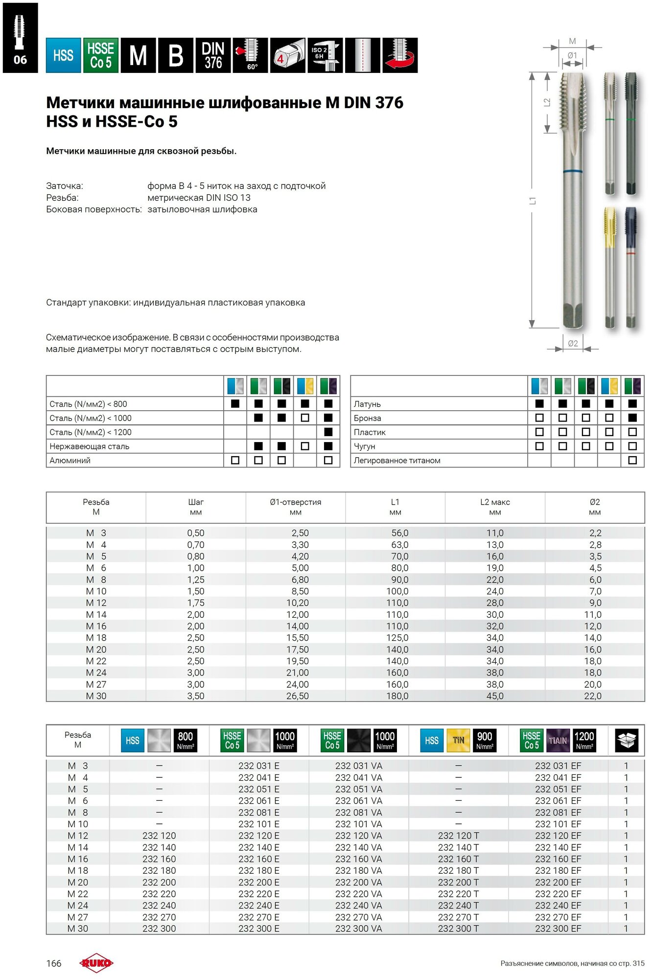 Type: tap, thread type: metric M, material: HSS Co 5, thread direction: right hand, metric thread diameter: M18, M2, M3, thread pitch: 2.5, number of items: 1 piece, scope: for machine tools, manual