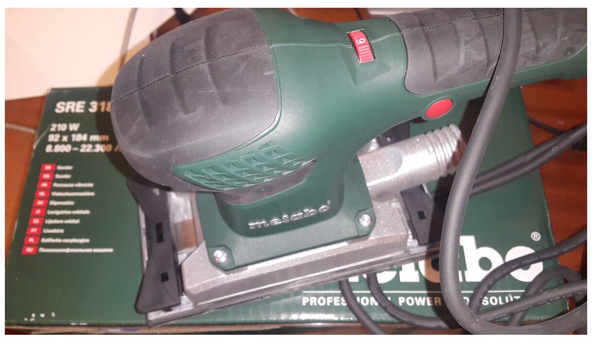 Type of power supply: from the mains, power consumption: 210 W, platform stroke: 2 mm, functions: speed control, design features: power button lock, dust box, packaging: box, weight: 1.55 kg