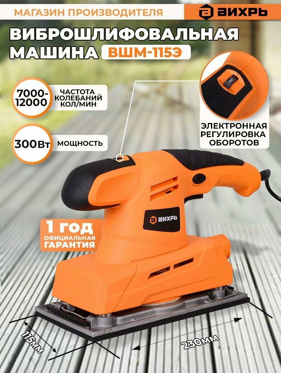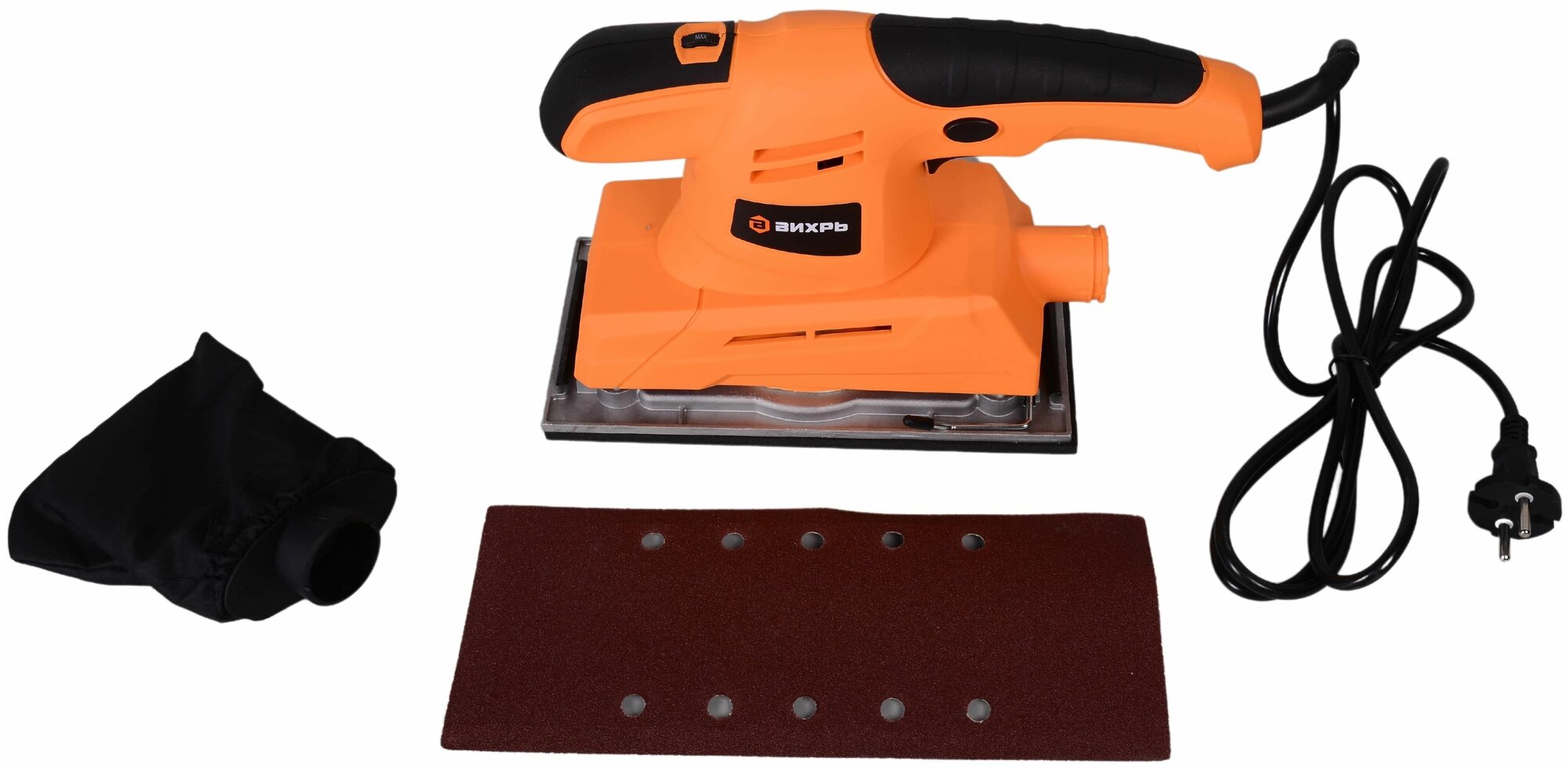 Vibratory grinder 1pc. Sanding sheet 1 pc. Dust bag 1 pc. Passport instruction 1 pc. Packing 1 pc.