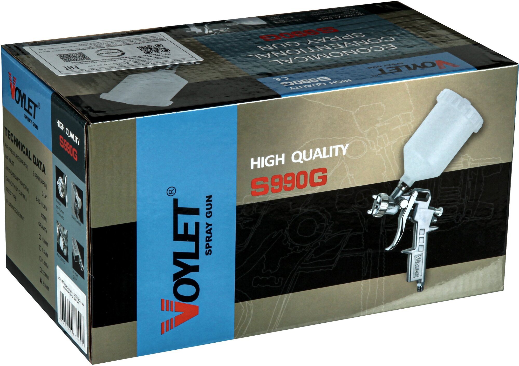 Type: pneumatic spray gun, tank volume: 0.60 l, spraying method: CONV, material supply type: lower, maximum nozzle diameter: 1.30 mm, type of air and paint flow mixing: internal