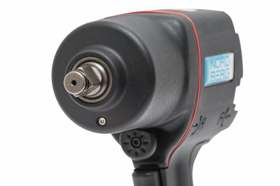 Twin Hammer system; ergonomic handle; air discharge away from the operator and work surface; movable nut; tool dimensions: depth 234 mm, width 206 mm, height 85 mm