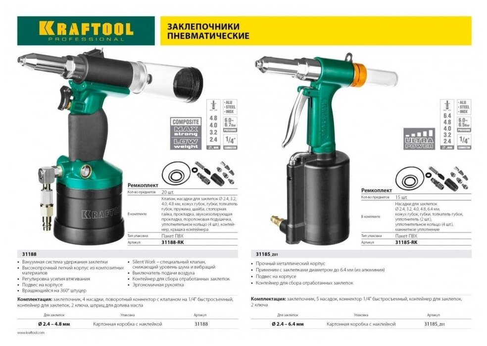 AR-48 , aluminum body, for stainless steel rivets, 2.4-3.2-4-4.8mm, KRAFTOOL