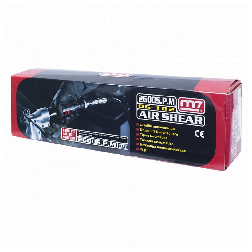 Type: scissors, maximum pressure: 6.30 atm, maximum air flow: 170 l/min, air nozzle diameter, inches: 1/4, hose inner diameter, mm: 10, connection type: threaded, maximum cutting thickness: 1.60 mm, max.