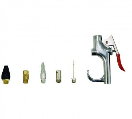 A pistol with a trigger; high pressure nozzle; blower nozzle; conical nozzle; pumping needle; extension tube; safety rubber tip