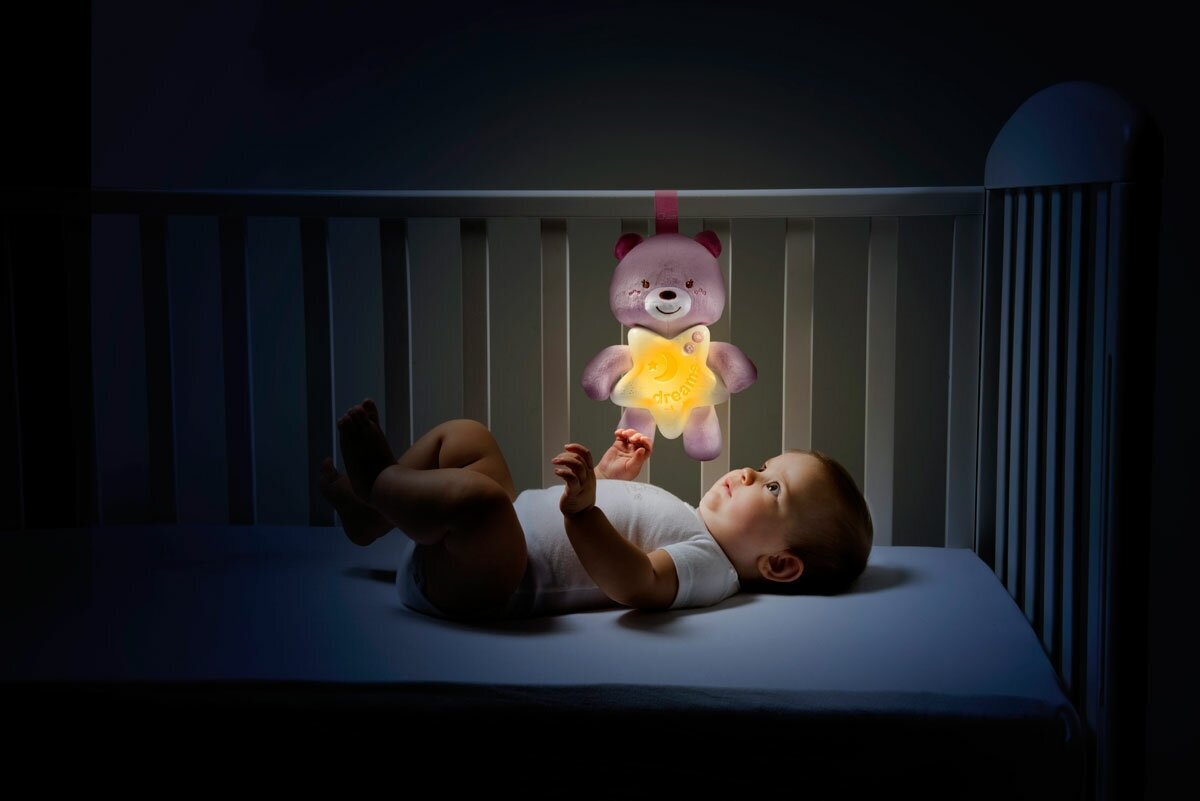 3 modes of operation: music, light and music with light together; 3 volume levels; 10 minutes of classical music and nature sounds waves, birdsong, spring rain; night light with 2 color options; batteries included