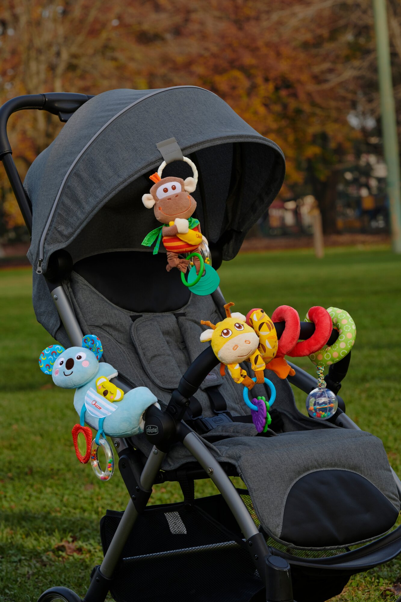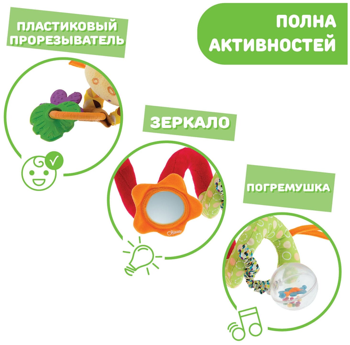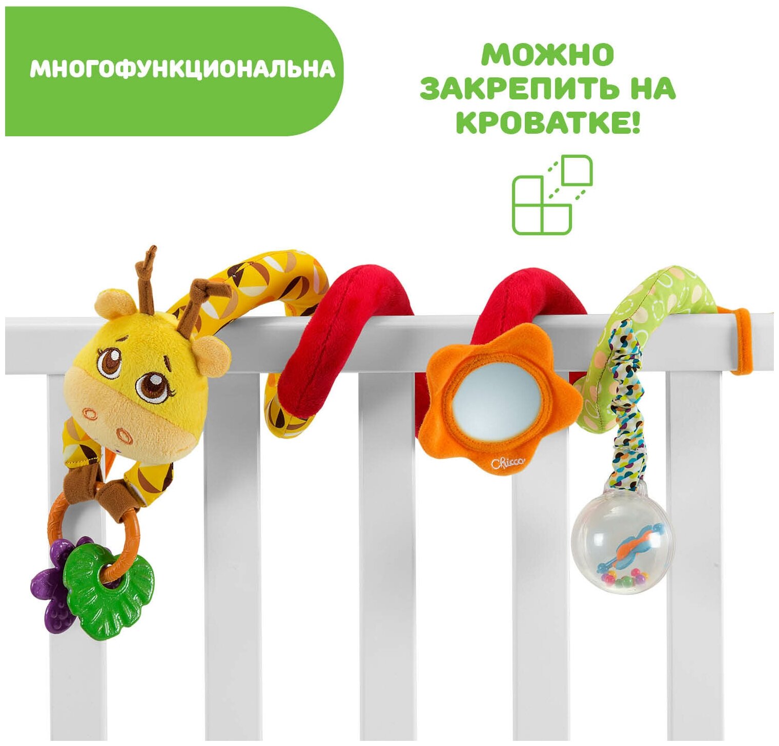 Type: hanging toy, effects: sound, educational elements: mirror, rattle, teether, tactile inserts, material: plastic, textile