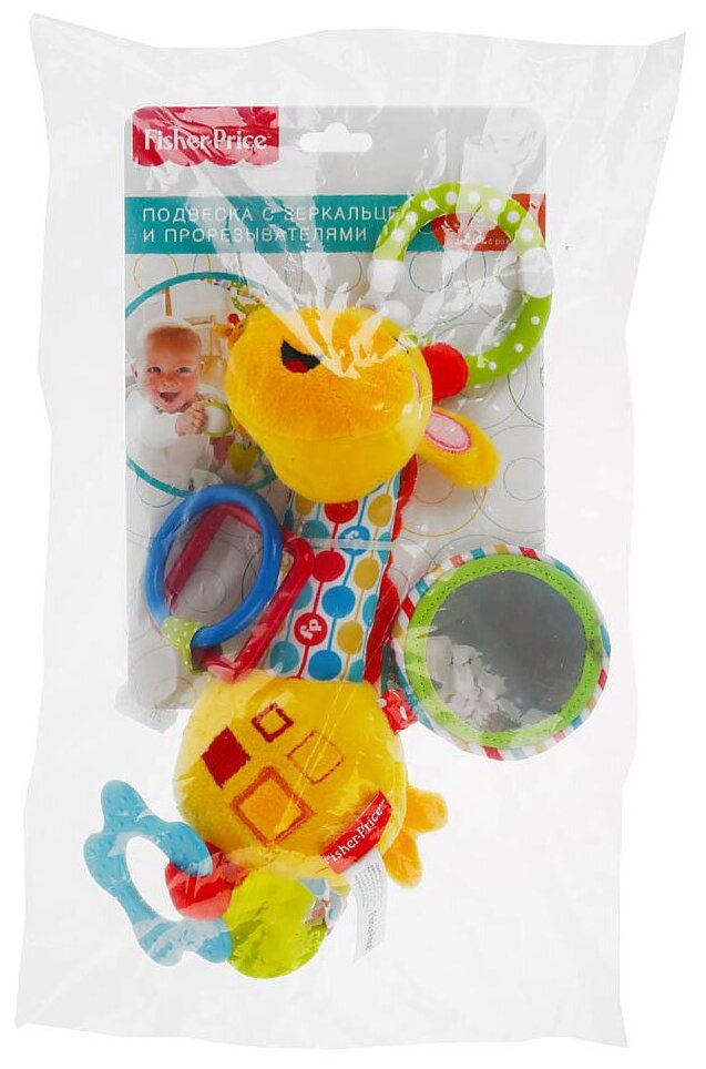 Type: hanging toy, effects: sound, educational elements: mirror, squeaker, rattle, teether, tactile inserts, material: plastic, textile