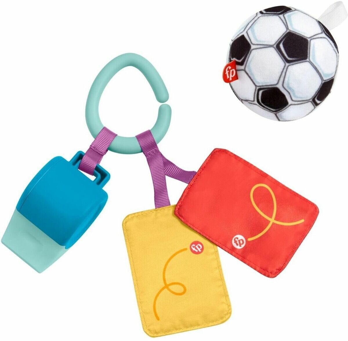 Felt soccer ball with a bell, rustling penalty cards, carabiner, whistle