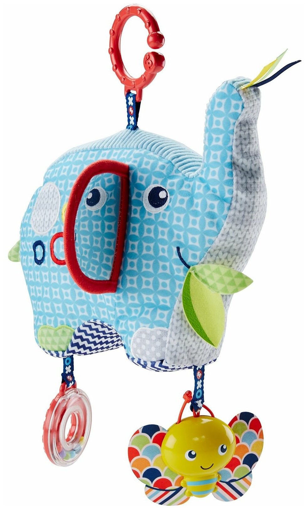 Type: hanging toy, effects: sound, educational elements: mirror, bell, rattle, tactile inserts, material: plastic, textile