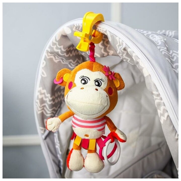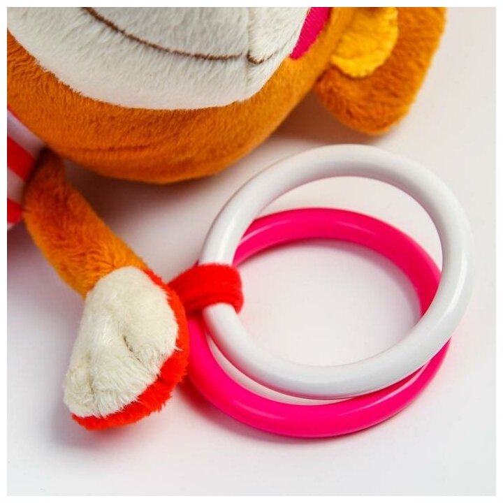 Type: hanging toy, effects: sound, educational elements: squeaker, rattle, teether, tactile inserts, rustling and crunchy elements, material: plastic, textile