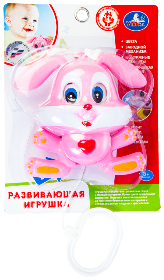 Type: hanging toy, effects: sound, educational elements: tactile inserts, material: plastic