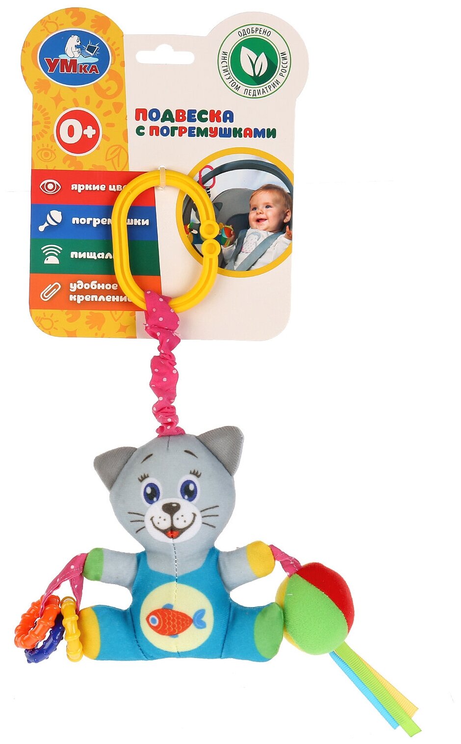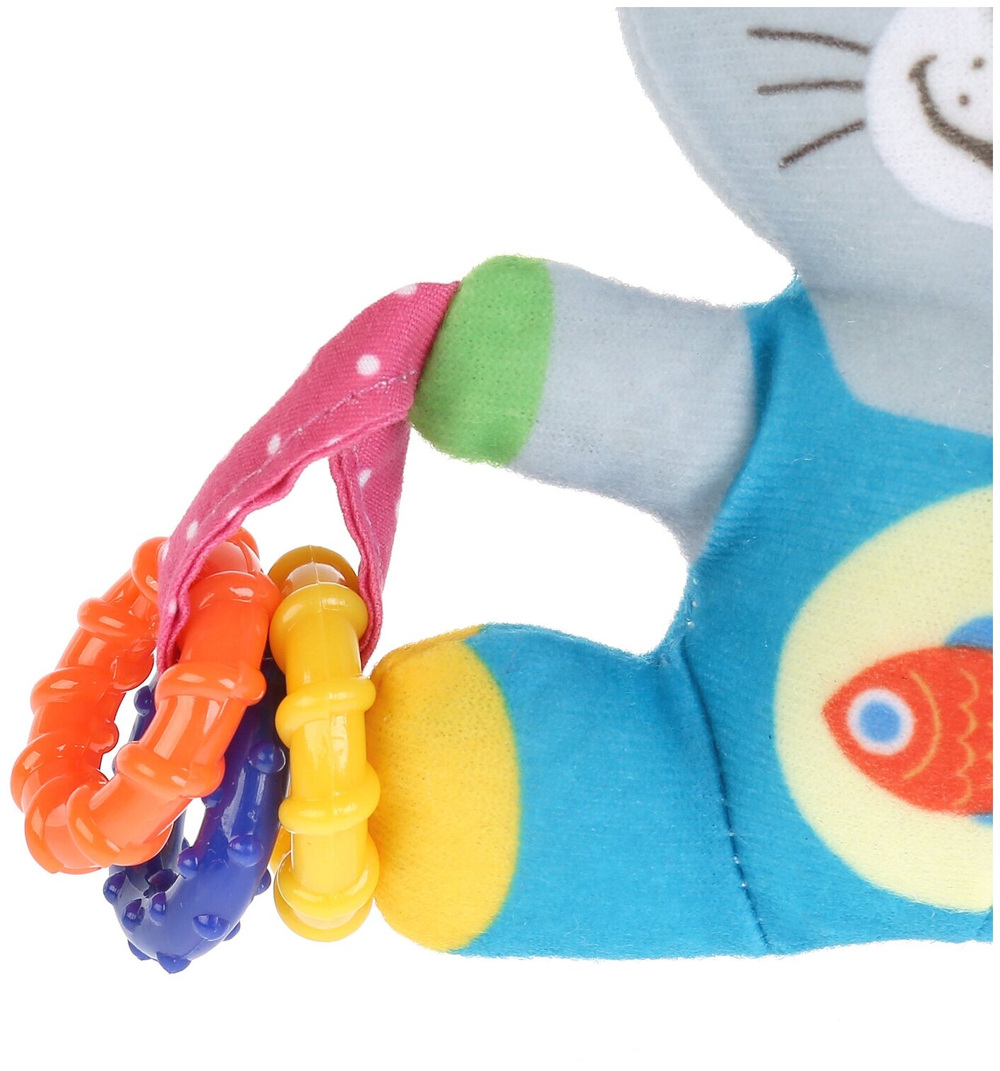 Type: hanging toy, effects: sound, educational elements: squeaker, rattle, tactile inserts, material: plastic, textile