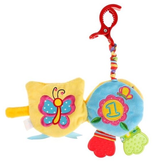 Type: hanging toy, effects: sound, educational elements: teether, tactile inserts, rustling and crunchy elements, material: plastic, textile