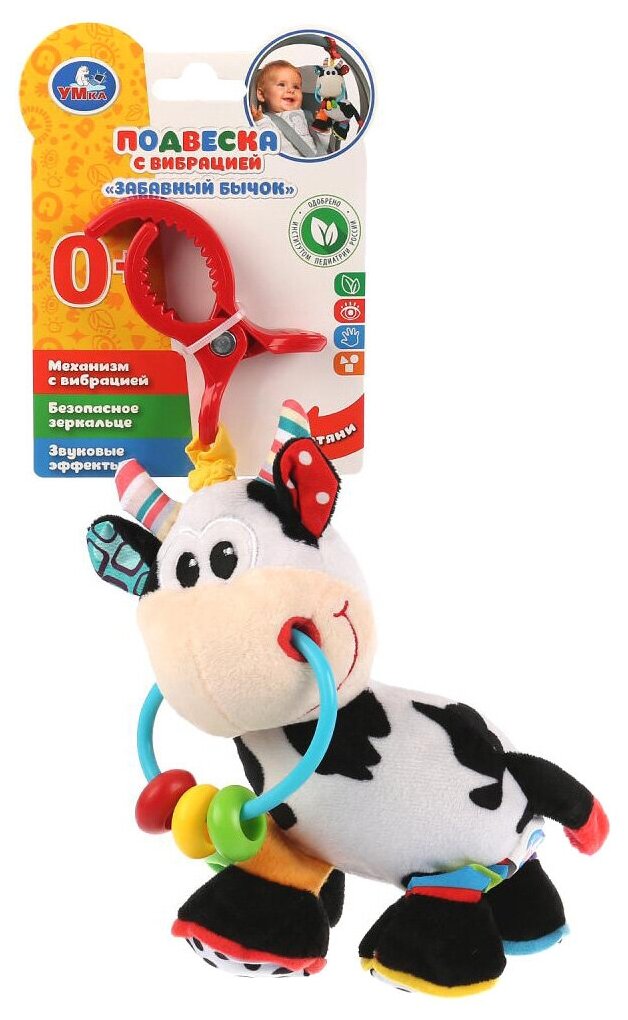 Type: hanging toy, effects: vibration, sound, educational elements: rattle, tactile inserts, rustling and crunchy elements, material: plastic, textile
