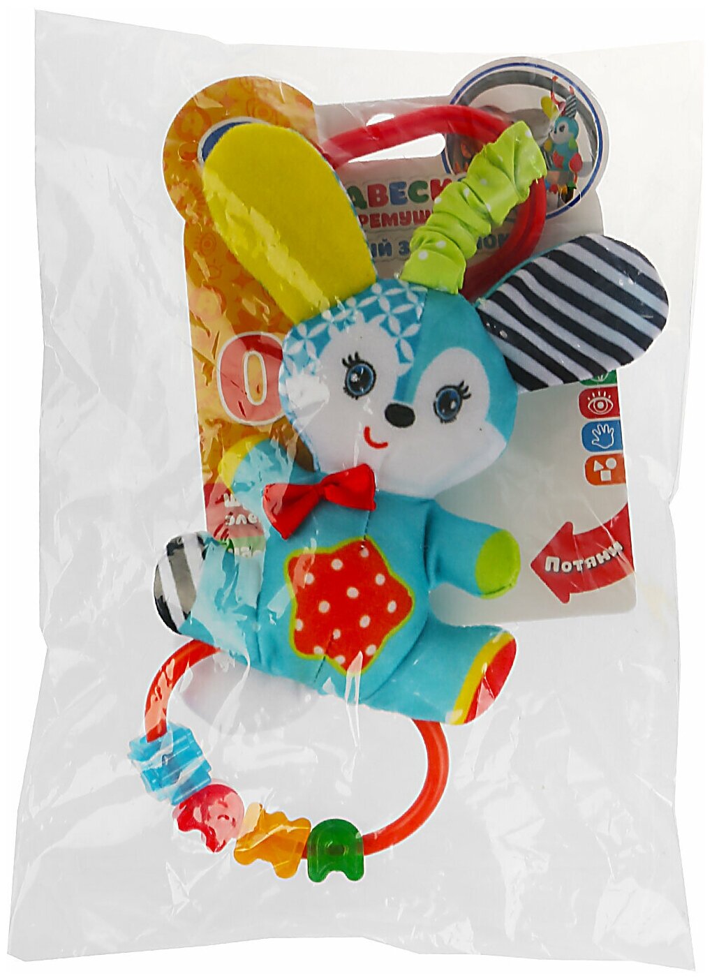 Type: hanging toy, effects: sound, educational elements: rattle, tactile inserts, rustling and crunchy elements, material: plastic, textile
