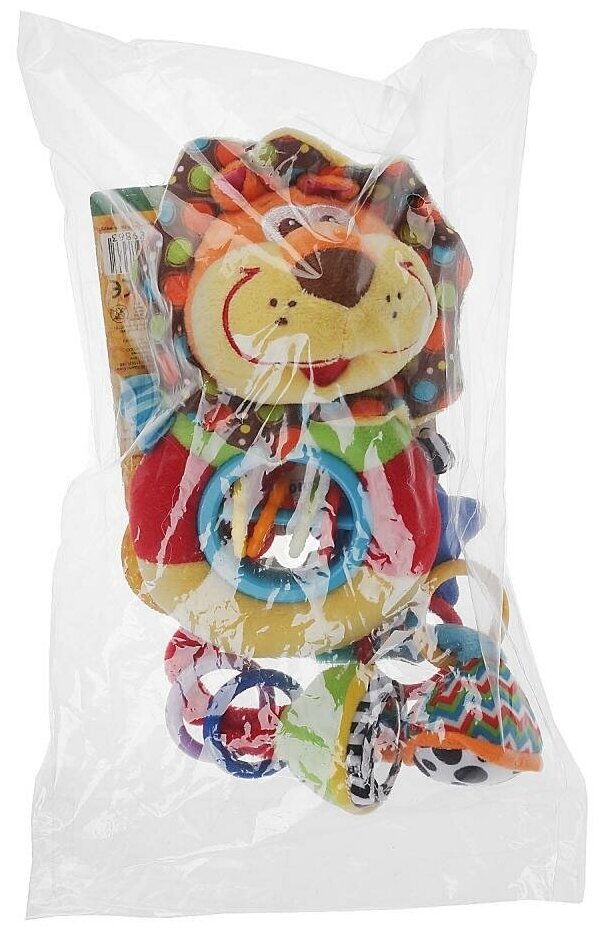 Type: hanging toy, effects: sound, educational elements: mirror, rattle, teether, rustling and crunchy elements, material: plastic, textile