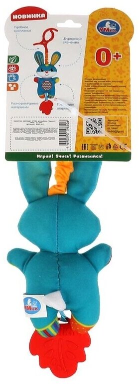 Type: hanging toy, effects: sound, educational elements: teether, tactile inserts, rustling and crunchy elements, material: plastic, textile