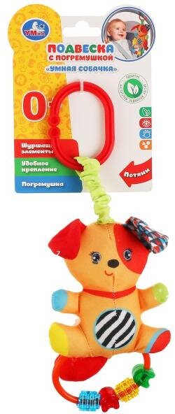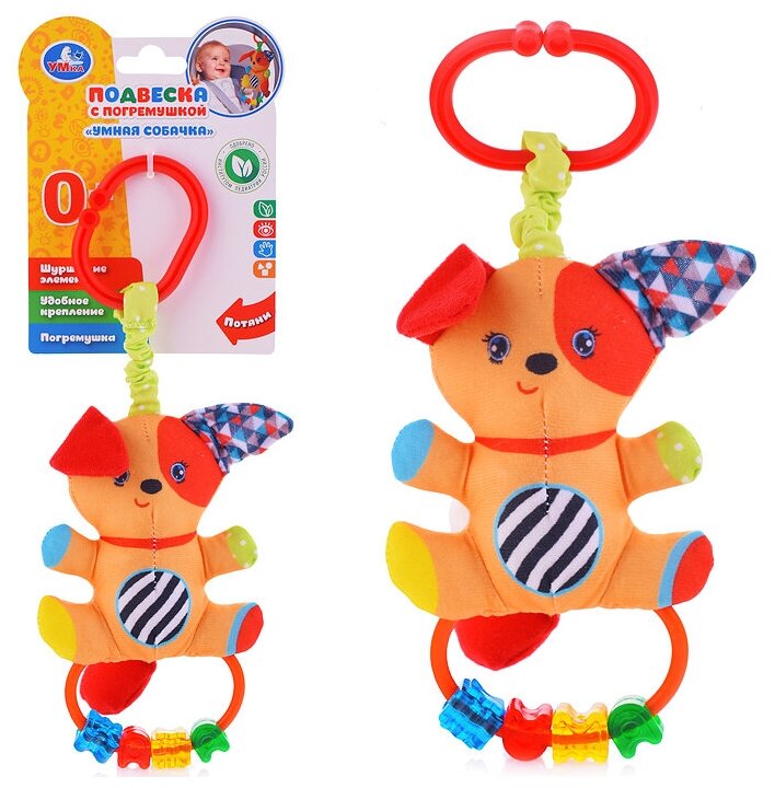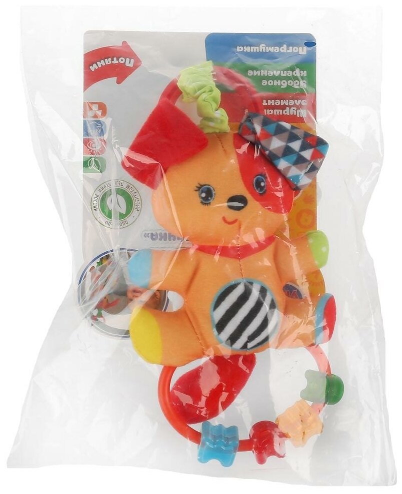Type: hanging toy, effects: sound, educational elements: rattle, tactile inserts, material: plastic, textile