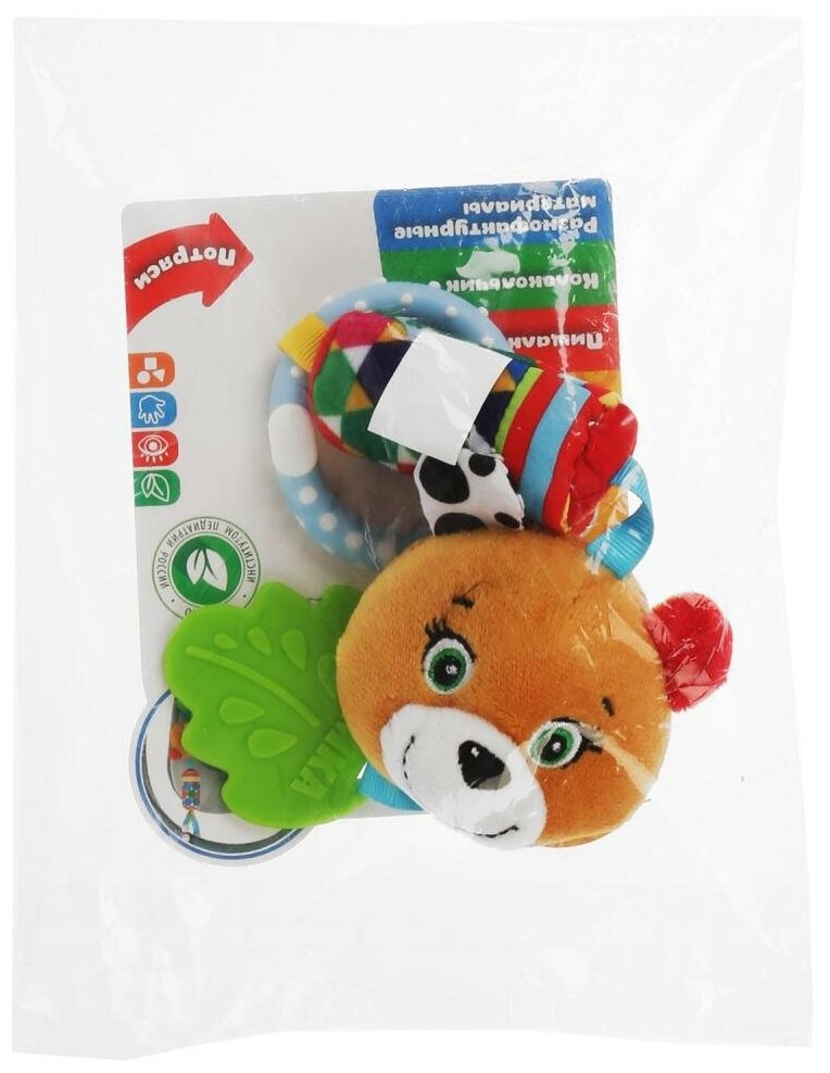 Type: hanging toy, effects: sound, educational elements: bell, squeaker, teether, tactile inserts, rustling and crunchy elements, material: plastic, textile