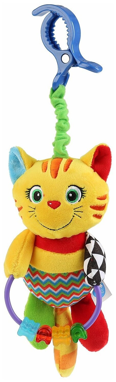 Type: hanging toy, effects: vibration, sound, educational elements: teether, tactile inserts, rustling and crunchy elements, material: plastic, textile