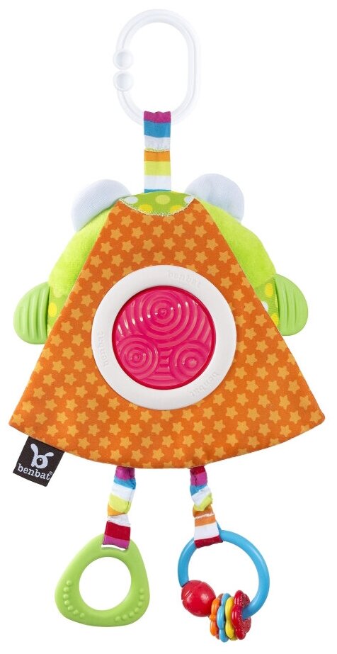 Type: hanging toy, effects: sound, educational elements: rattle, teether, tactile inserts, material: plastic, textile