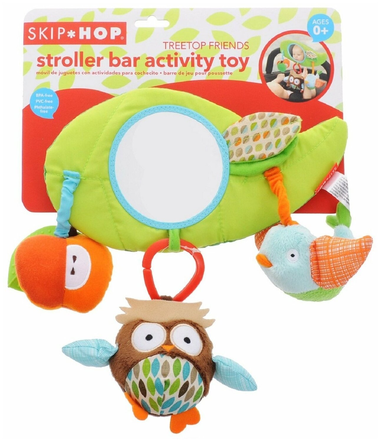 Type: hanging toy, effects: sound, educational elements: mirror, squeaker, rattle, tactile inserts, material: plastic, textile