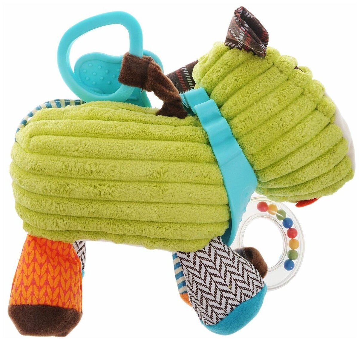Type: hanging toy, effects: sound, educational elements: bell, rattle, teether, tactile inserts, material: plastic, rubber, textile