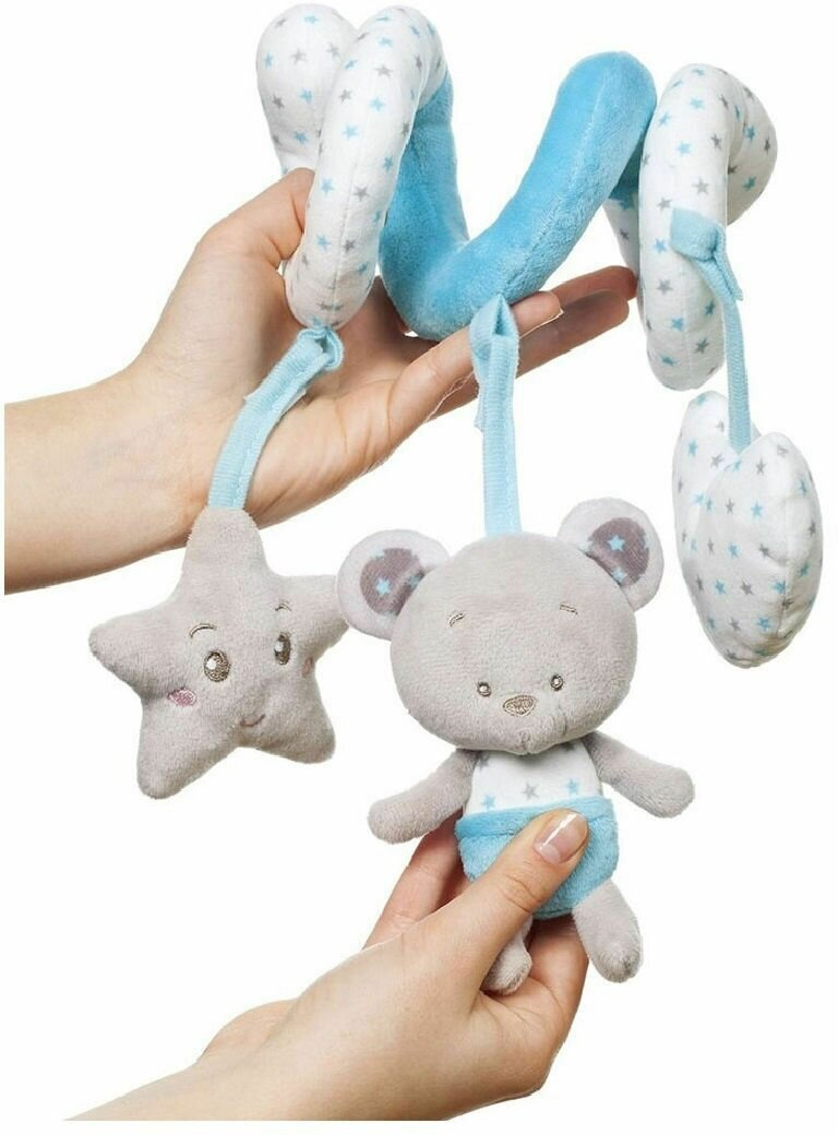 Type: hanging toy, effects: sound, educational elements: squeaker, rattle, rustling and crunchy elements, material: plastic, textile