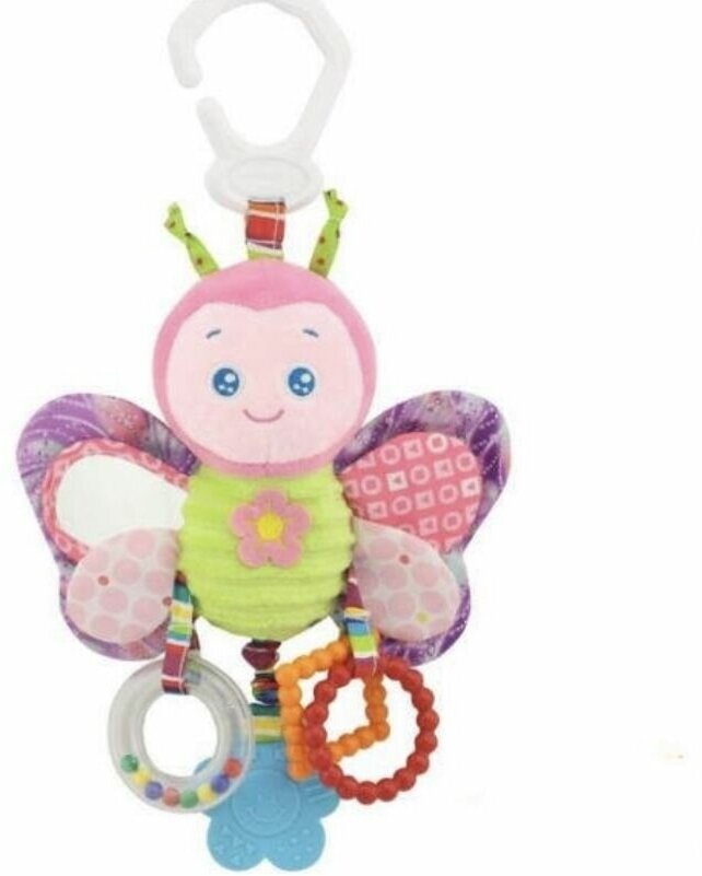 Type: hanging toy, effects: sound, educational elements: mirror, squeaker, teether, tactile inserts, rustling and crispy elements, material: plastic, textile