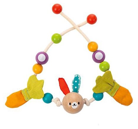 Type: stretching, effects: sound, educational elements: tactile inserts, rustling and crispy elements, material: wood, textile