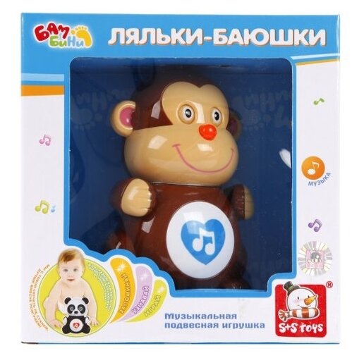 When turned on, the monkey begins to move its eyes and arms; if you pull the toy by the rope, it will start playing melodies