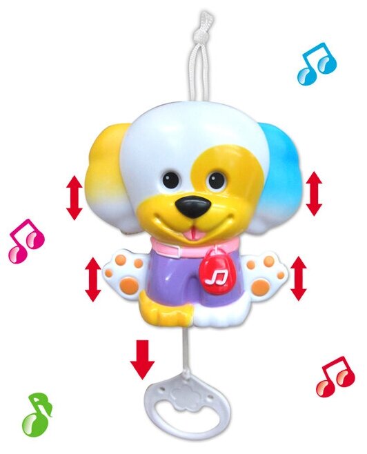 If you pull the rope, the melody will play, parts of the body of the toy will begin to move